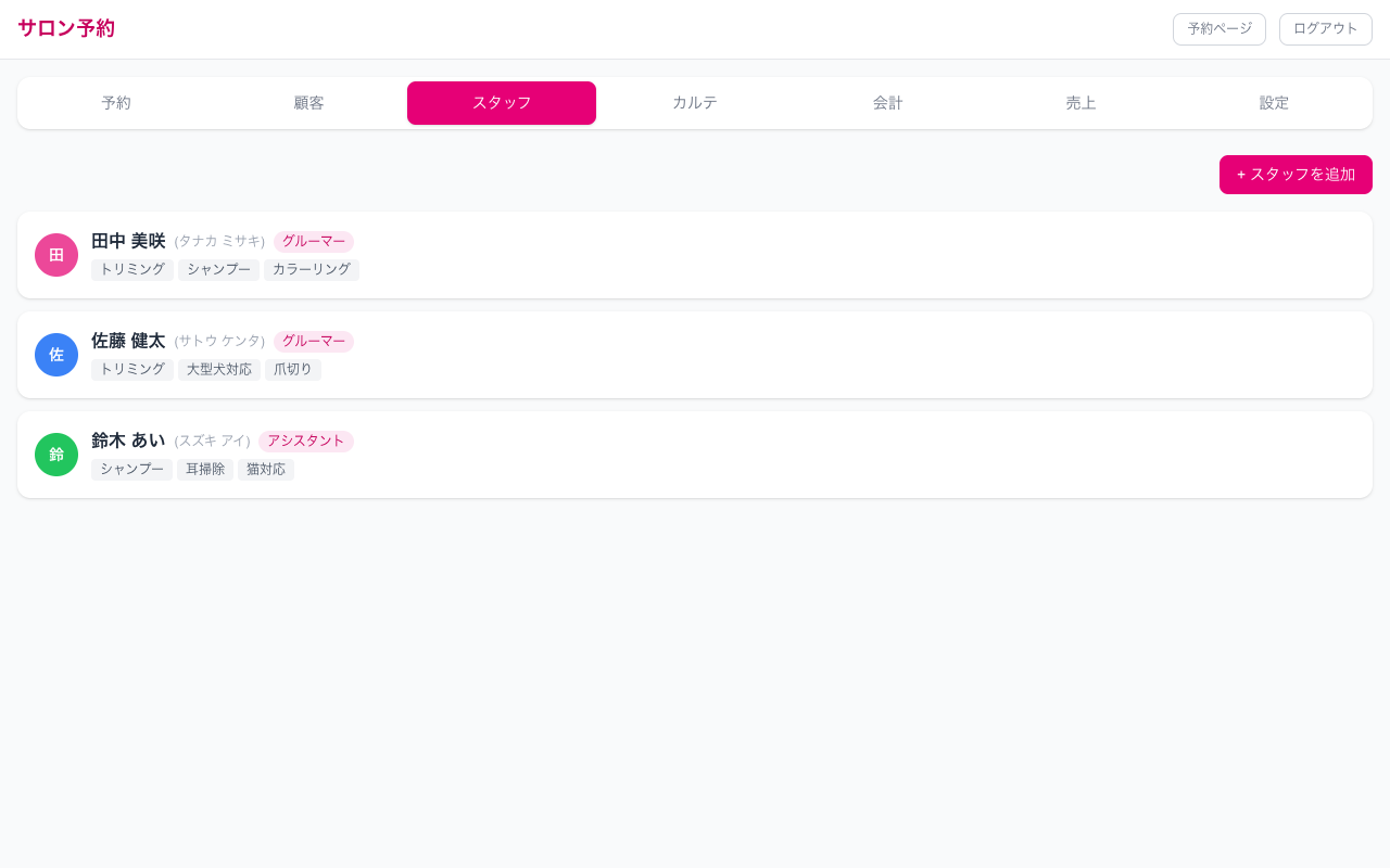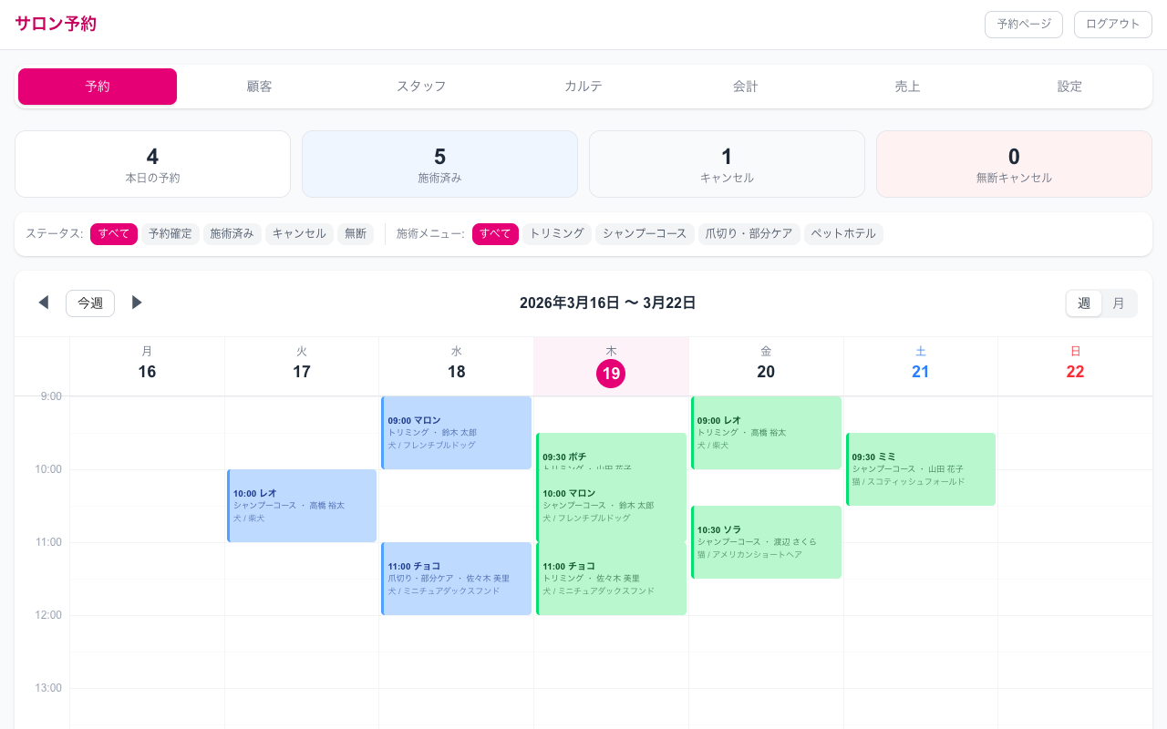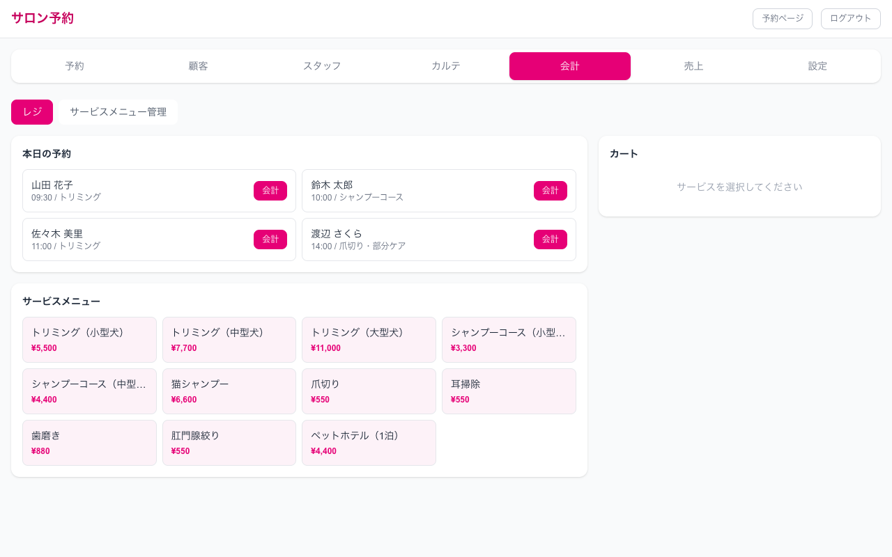 ペットサロン専用のオールインワン業務システム。
