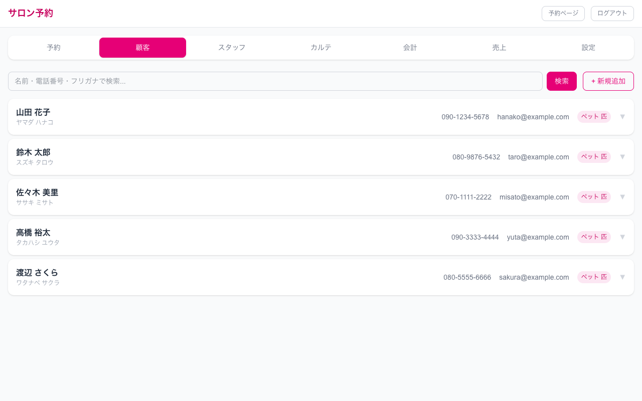 顧客・ペット管理